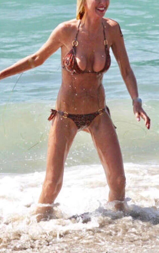Complications. My heart breaks for this starlet, but fortunately she does not seem too bothered by what seems to be a poor surgical outcome. This dramatic asymmetry (i.e. right ≠ left) was likely caused by the implant pocket (on patient's left) extending below the lower attachment of the breast to the chest wall (infra mammary fold). Some surgeons will cut through this critical structure as a method of correcting ptosis ("droopy" breast), but that is usually il-advised. Whatever the issue, this problem can be corrected.